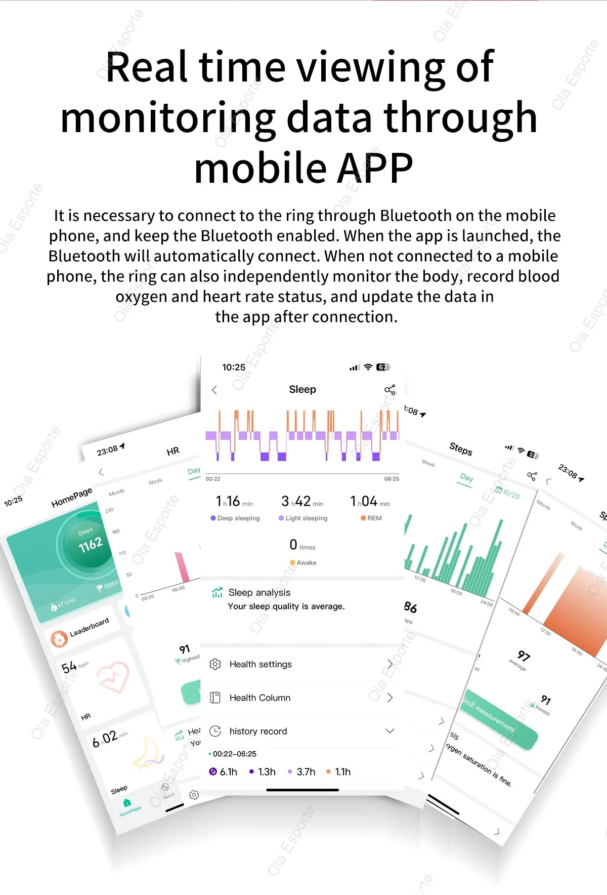 The Ola Esporte Smart Ring is a sleek and lightweight wearable designed for everyday wellness. Weighing only 5g and made with a durable alloy case, this stylish 2024 model tracks heart rate, sleep, and blood oxygen levels without the need for a display screen. It features a 15mAh battery and a 5ATM waterproof rating, making it perfect for daily wear and even swimming. Certified by CE and FCC, it's a smart and fashionable gift choice with fast shipping available.