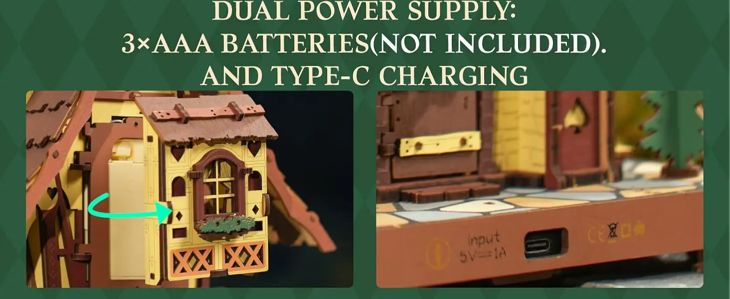 435 laser-cut wooden pieces fit perfectly with mortise-and-tenon joints. Easy-to-follow instructions included. (Requires 3×AAA batteries, not included.)