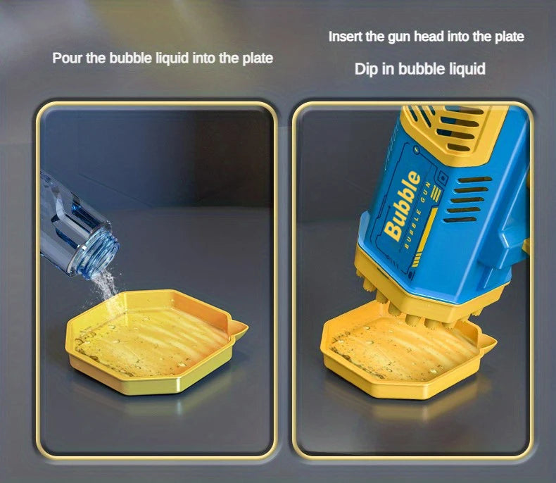 Complete Set – Includes 1 Bubble Gun, 150ml bubble solution, and 1 bubble tray.