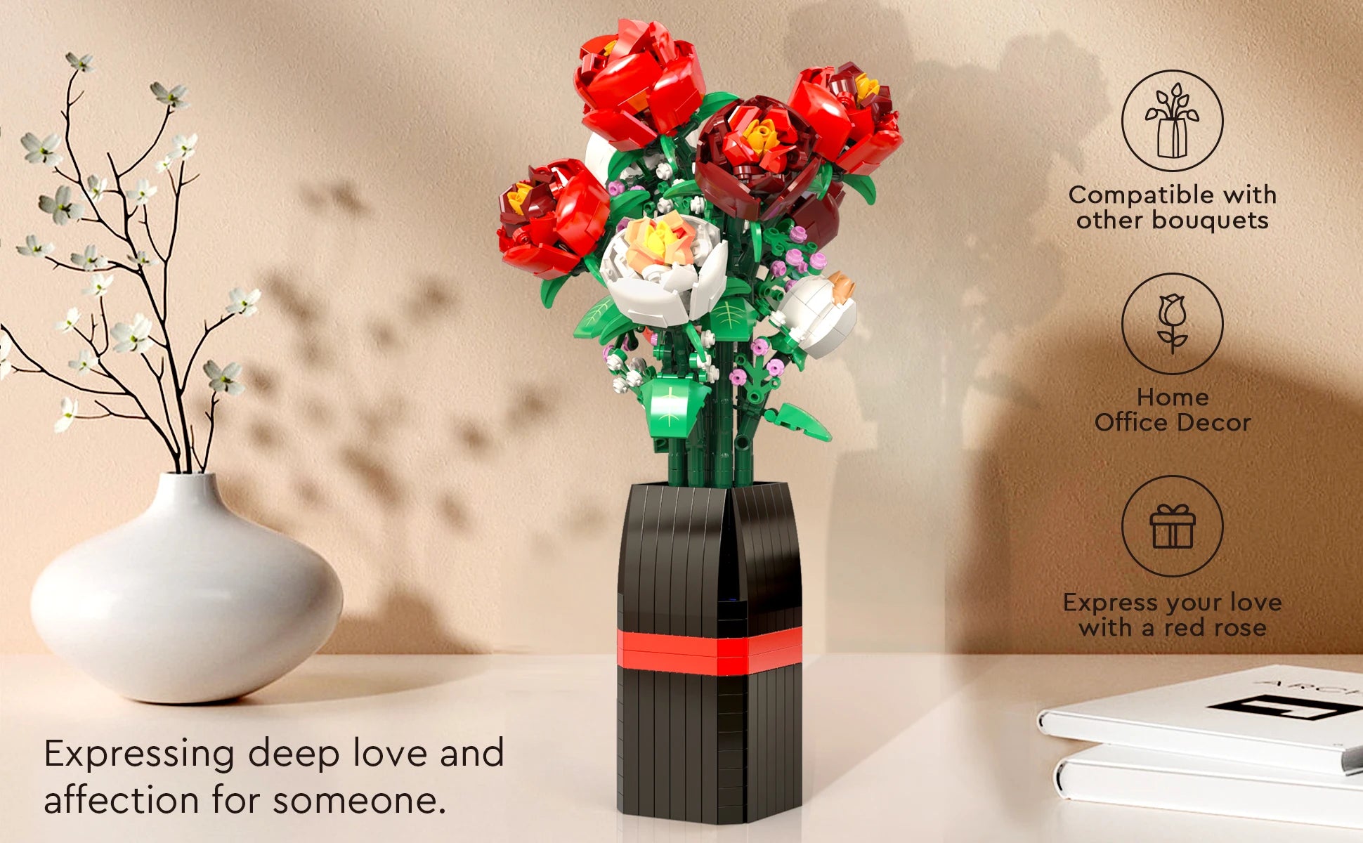 Build and display a stunning bouquet with this 818-piece Rose Flower Bouquet Building Set. Perfect for kids and adults, this set lets you create a lifelike arrangement that doubles as a beautiful home or office decoration.