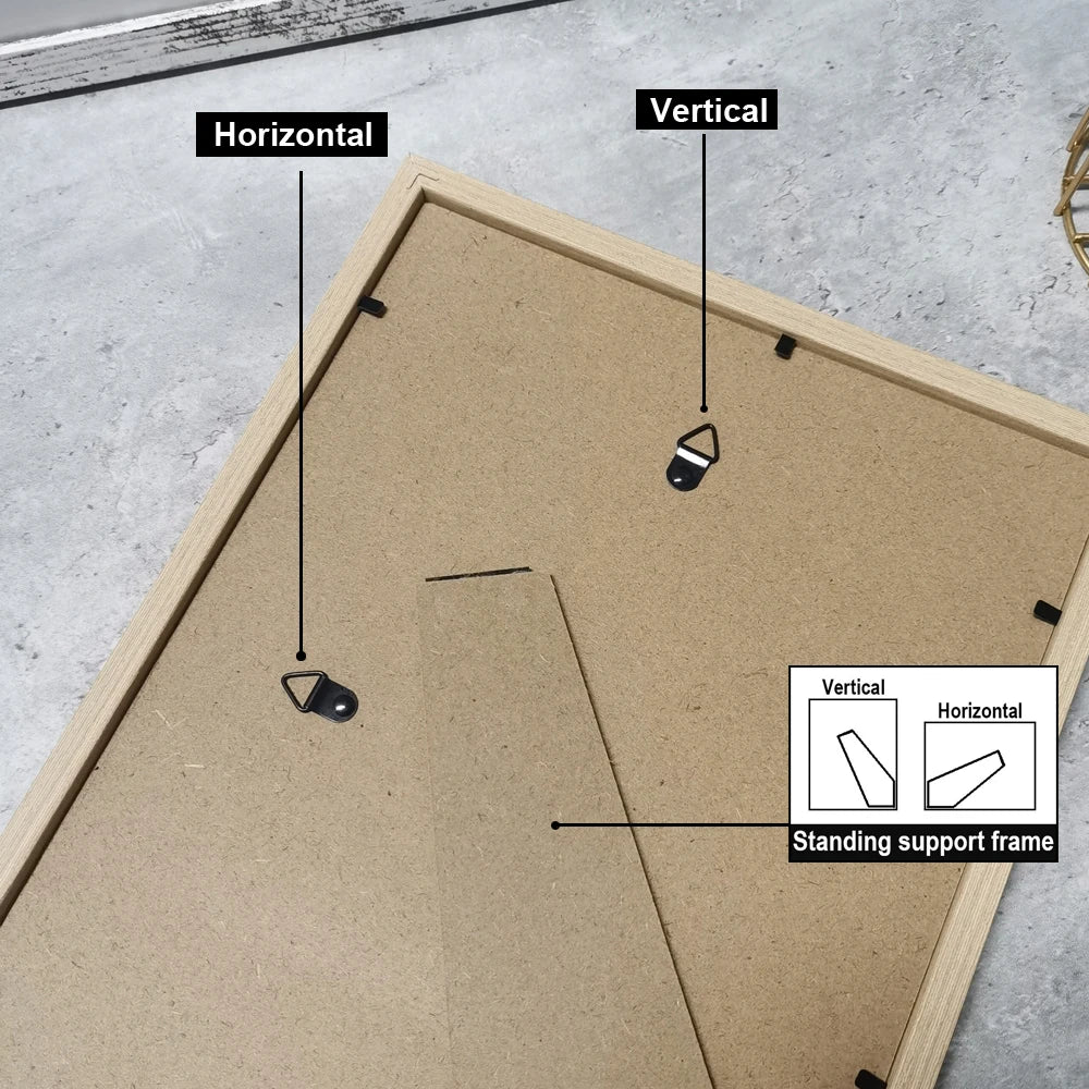 You can hang the frame on the wall, or you can put it on the table and against the wall